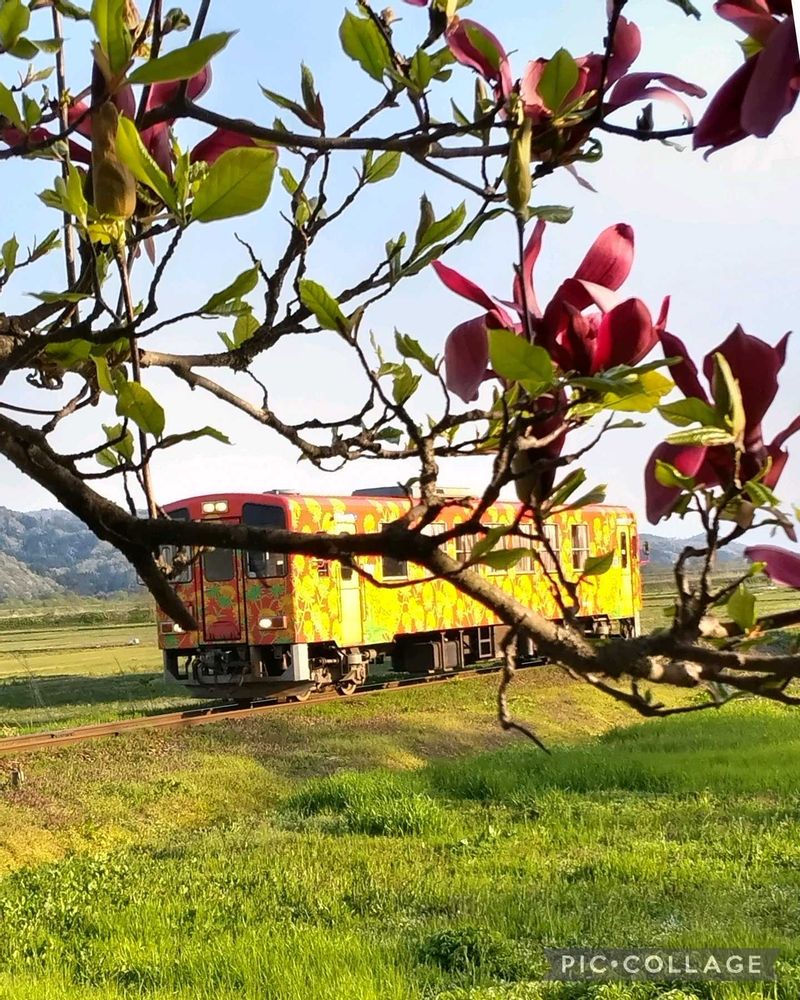 夕日の紅花号も素敵 モクレンとぴったりです。😃💕
