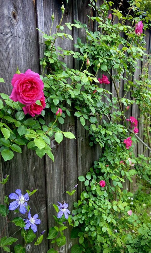 バラにクレマチス、新芽にツボミ