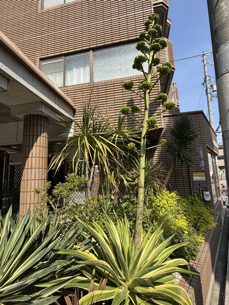 立派なアガベ様がいらっしゃいます。昨年の秋ごろからぐんぐん花芽?が伸びて、すごいことになってます。