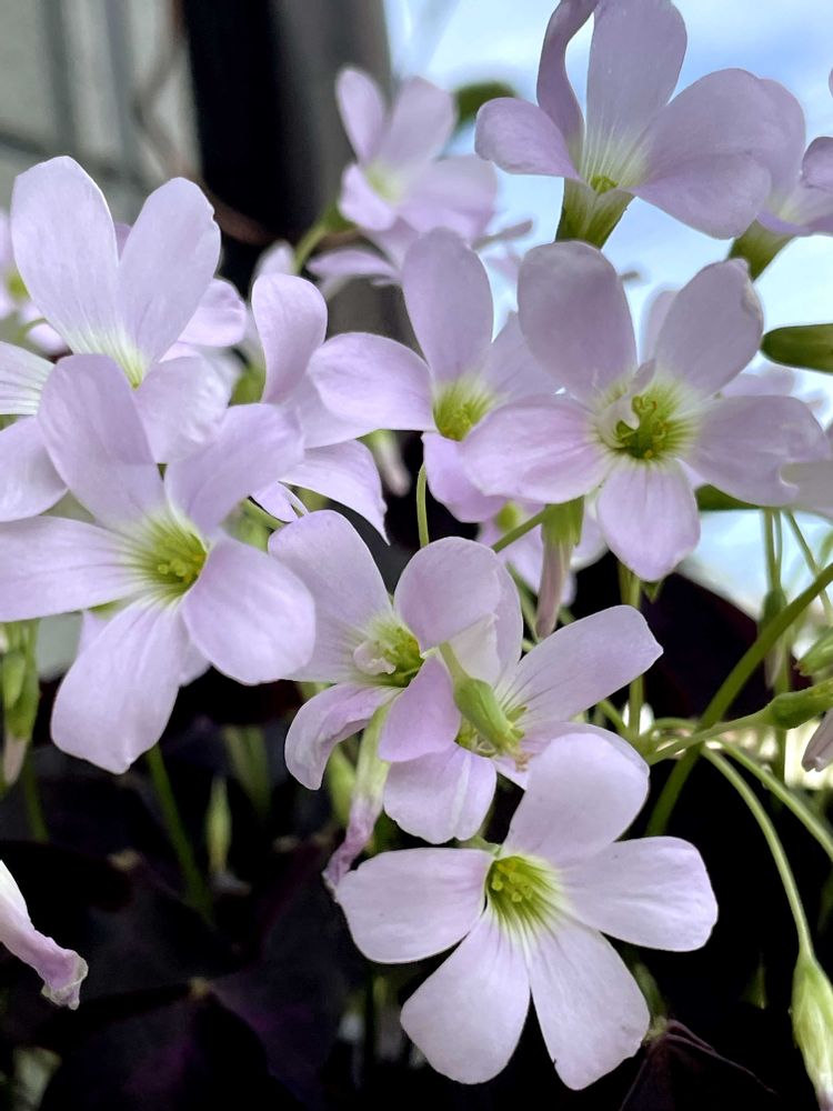 花も薄いピンクでとても可愛いですが、三角の紫色の葉っぱもとても素敵です