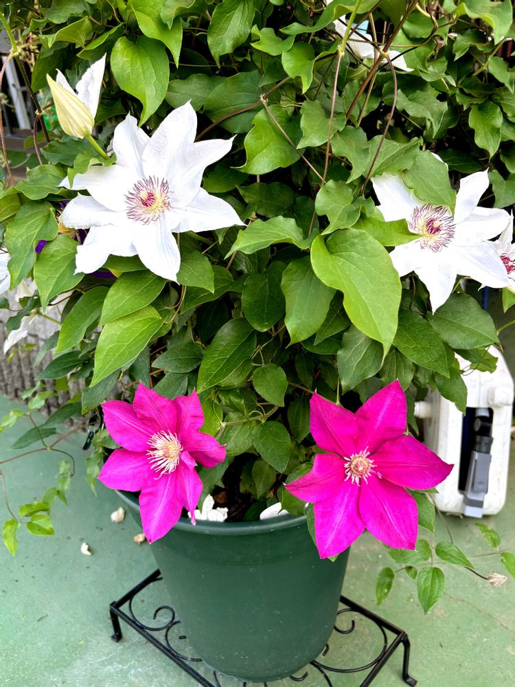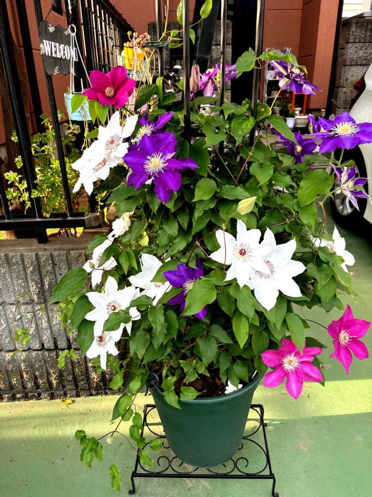 三種混合クレマチス大成功じゃないですか‼️それぞれが主張せずに収まっていていい感じです😊
