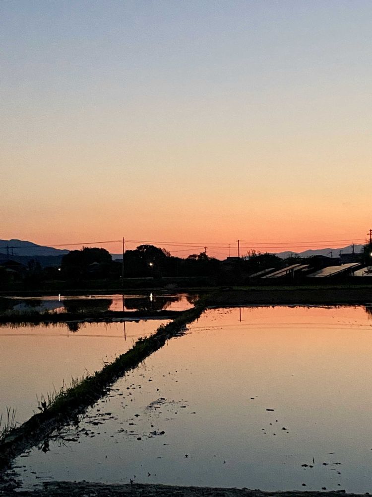 ゆうちゃんさんの田んぼ,夕焼け,短歌の投稿画像