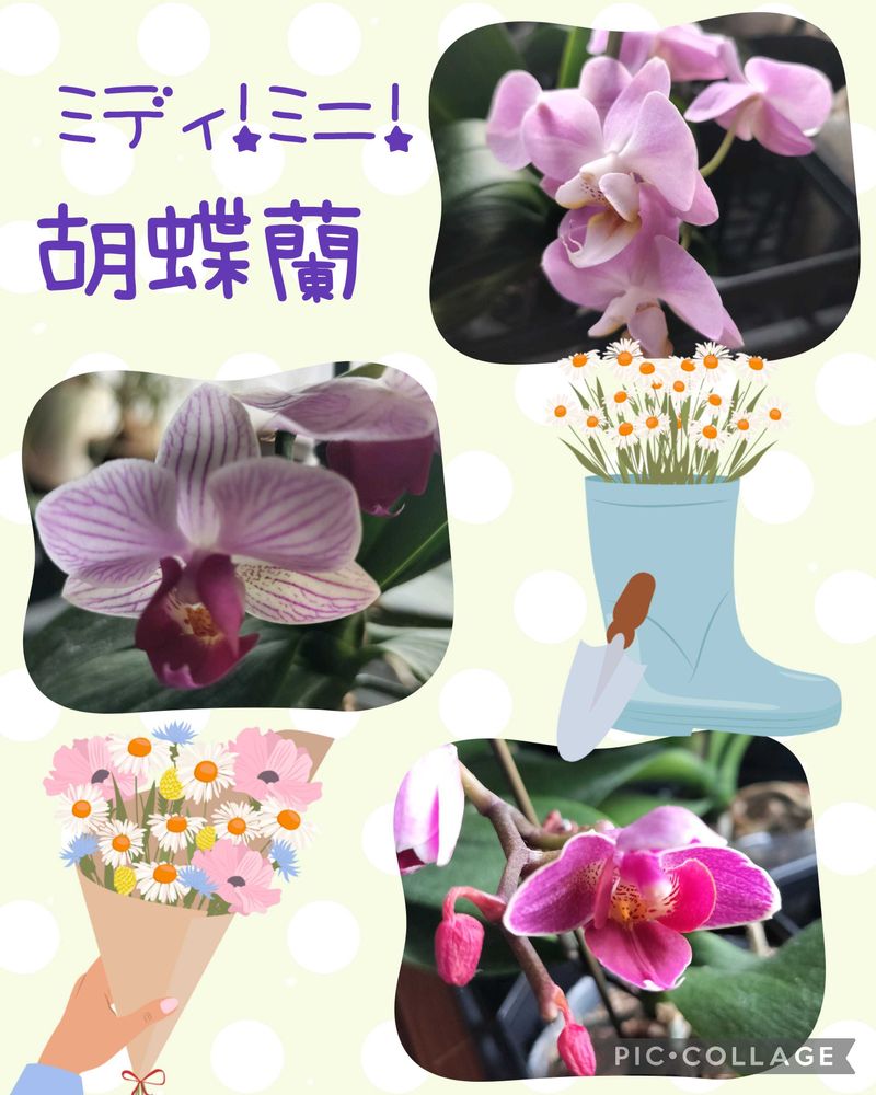 1枚目…ミディちゃんミニちゃん我が家の今咲いてる胡蝶蘭🤗