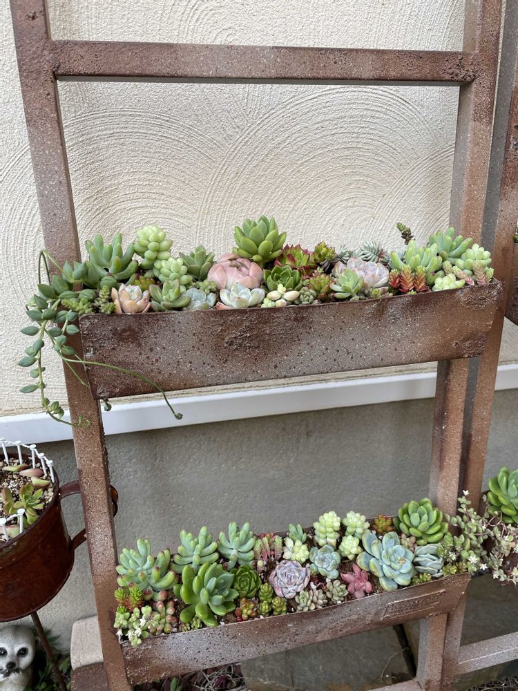 板を2枚買ってきて、ラダーを両サイドにして多肉棚を作ろうかな〜と計画中。