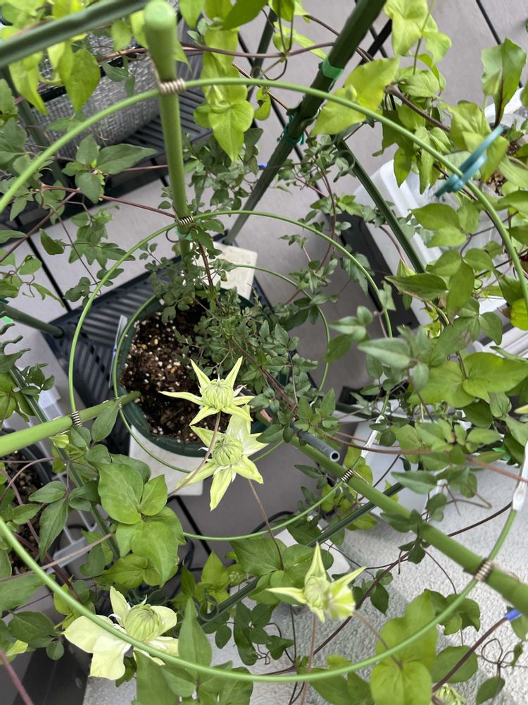鉢植えなら日当たり風通しの良い場所に置き場所変えると花付き良くなる可能性あり😊。最近僕もクレマチス凝り出して(ただ今三種類)勉強中です。お互い生育励みましょう😉!