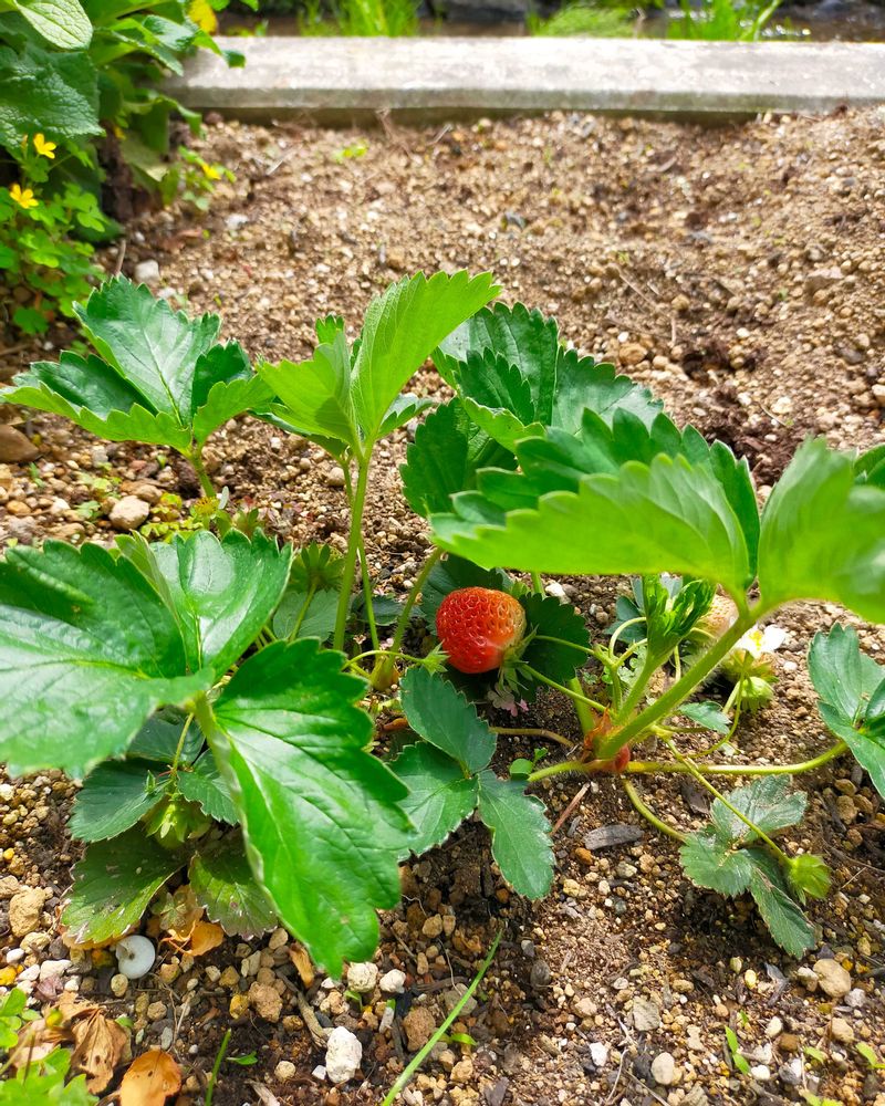 数年前に育てたイチゴの苗からランナーが出て、毎年畑の色んな場所に生えているイチゴ🍓