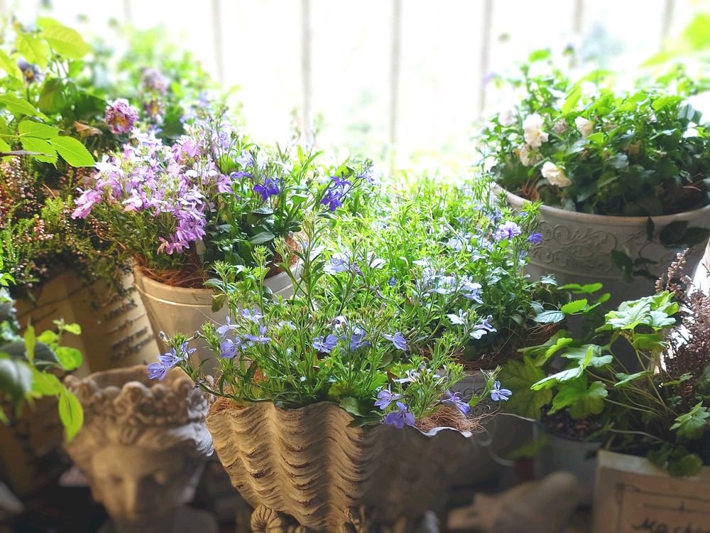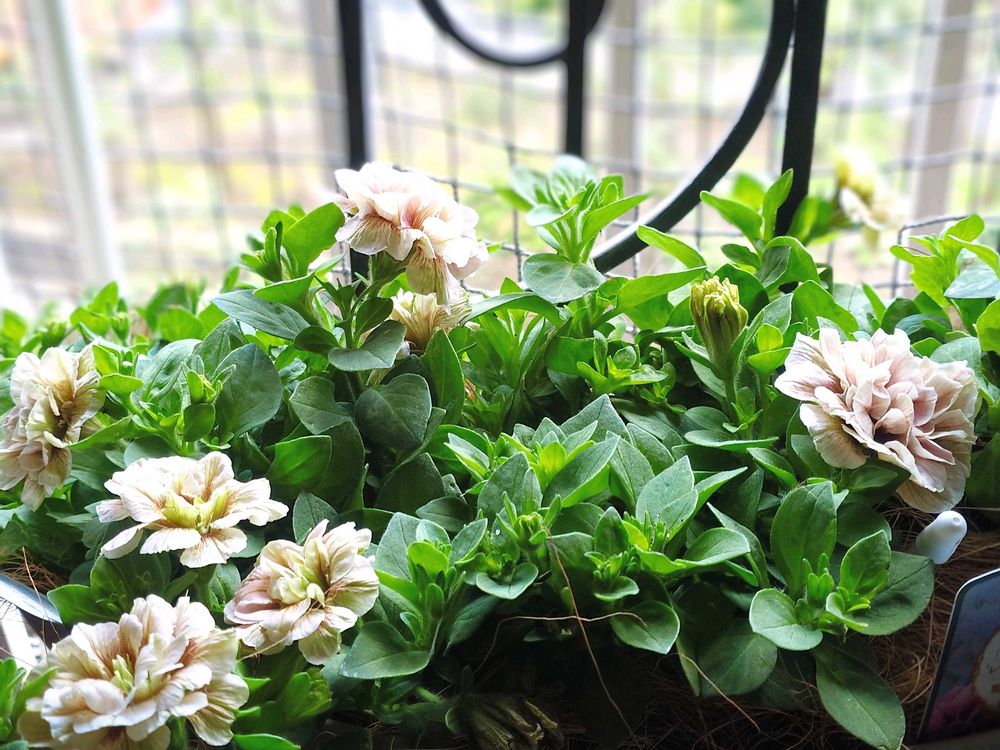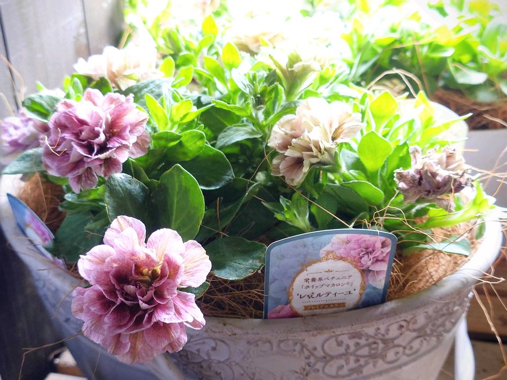 寄せ植えにした花日和さんのペチュニアホイップマカロンもレミルティーユもシャキーンとしてくれたし植込み成功したみたい