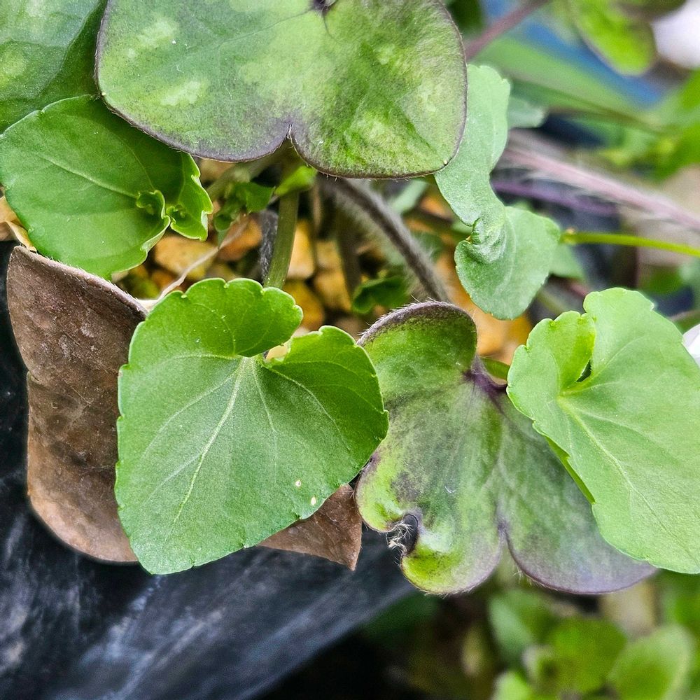 雪割草の鉢からコンニチハはラッキー✌💜🤍😘🤍💜✌