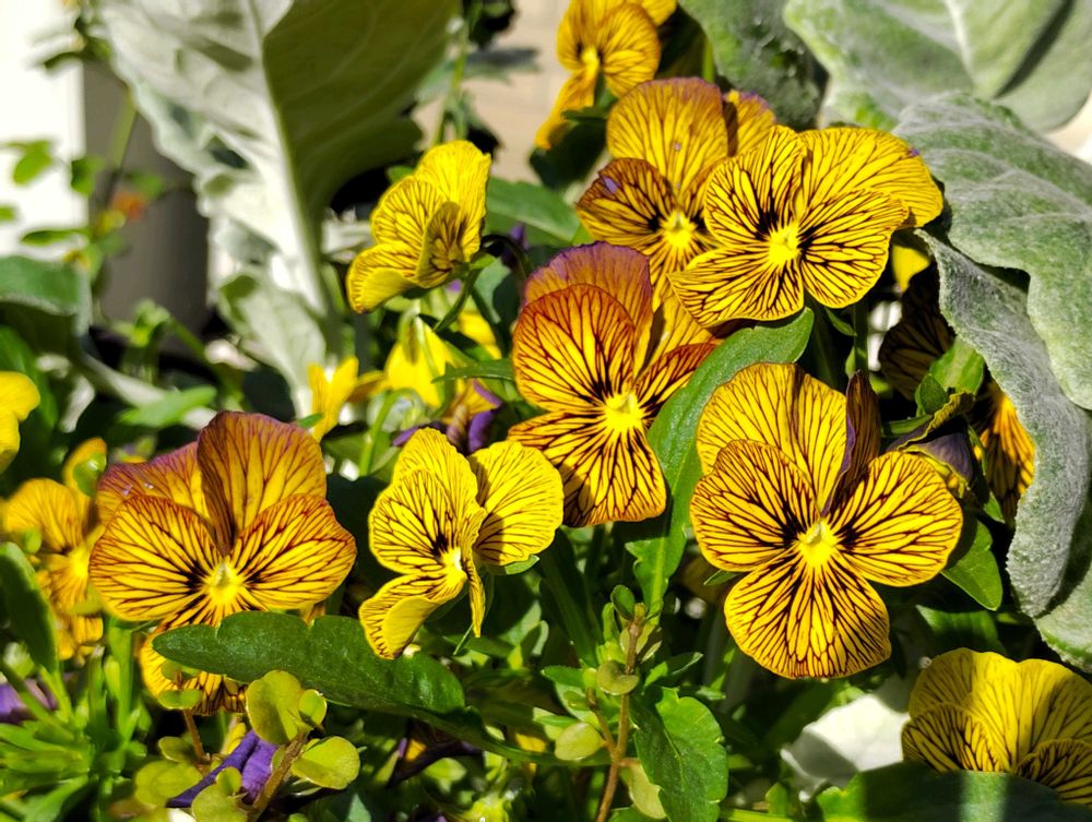 庭のパンジーやビオラが色鮮やかに咲いています