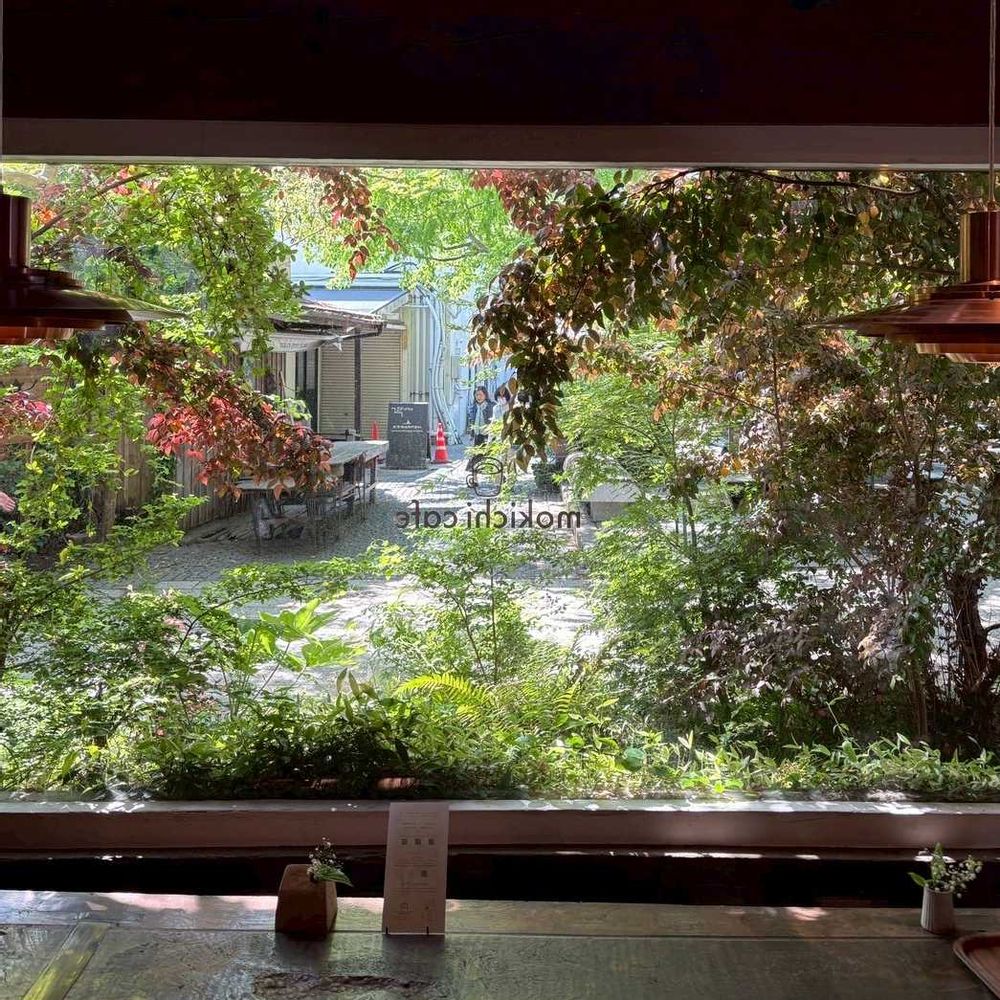 ①モキチカフェ1階の窓🪟から見える中庭が絵画🖼のようでした🥰