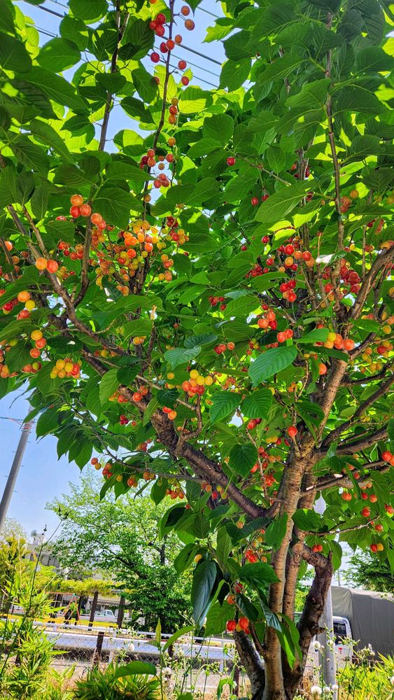 地元~🚶♀️散歩路、阪堺電車🚃沿いに…さくらんぼ🍒がびっしり🙌(^-^)❣️