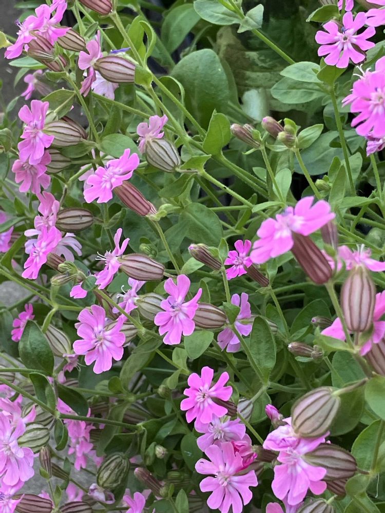 シレネの優しいピンクの花、近所の花友さんからいただいたものですが、名前不明でした。