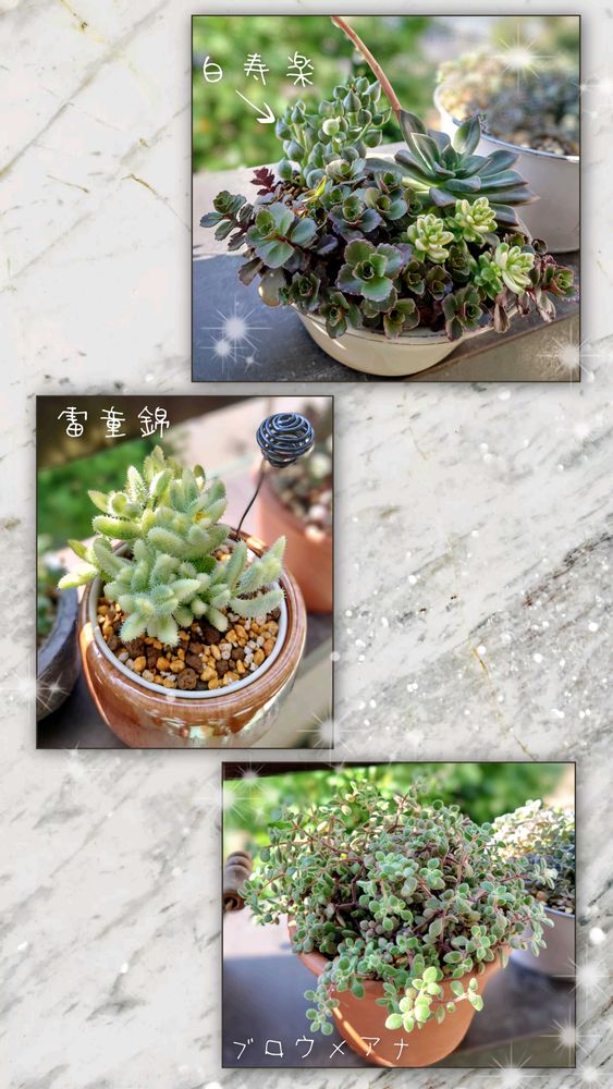 白寿楽は増えもせず減りもせずの状態ではや4年くらい…🤔 雷童錦は小さいまま地味〜に木質化してきてる…😅💦 やっぱ、スパルタという放任状態のせいかしら…😅💦 この春から以前よりはお水をあげるようにはしてるんだけど… まだまだだなぁ~🤔