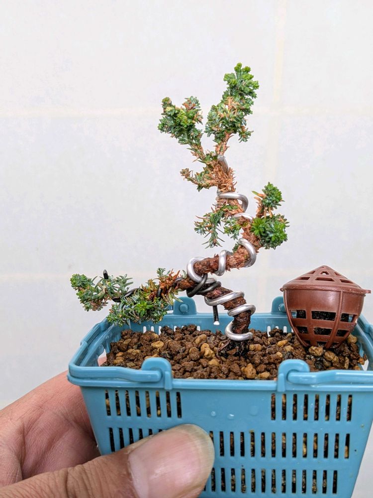 盆栽のザル栽培をやりたくて…百均でミニチュア買い物カゴを買って植え替えてみた…。