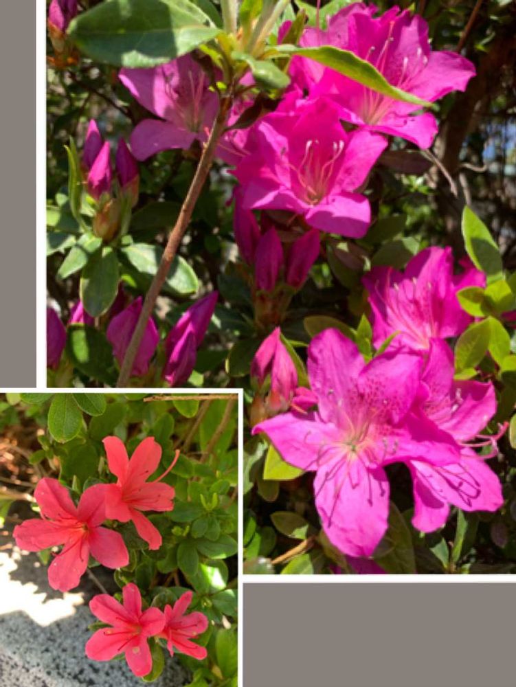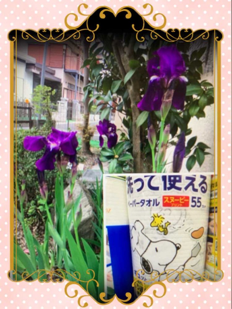①我が家のギボウシ ②お向かいのアヤメ ③④⑤息子が通っていた幼稚園の花ももとツツジ