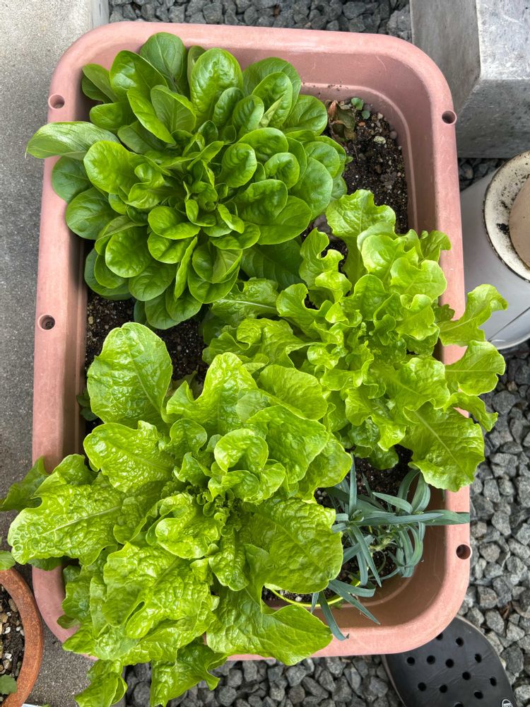 3️⃣野菜が高騰の時スーパーで買った根付きの「リーフレタス」や「チシャナ」成長点をの残してプランターに植え付けたのがモリモリ‼️サラダやBBQに使えそう🍽️