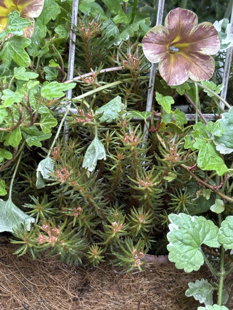 茶色がグリーンになっていくんです😅お花と寄せ植えしてるから?