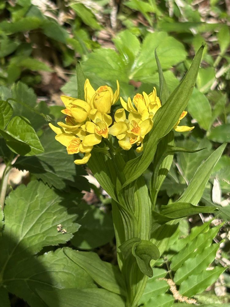 落ち葉や新芽の林床で、キンランの鮮やかなお花は、目立ちますよね🧡
