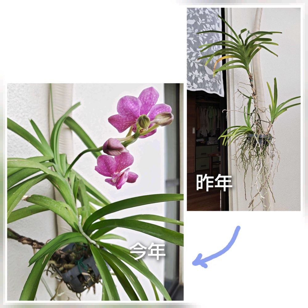 ①昨年、葉が落ちて長〜くなったバンダの幹を切りました。枯れずに元気🎶お花も咲きました。まずは一安心です(θ‿θ)
