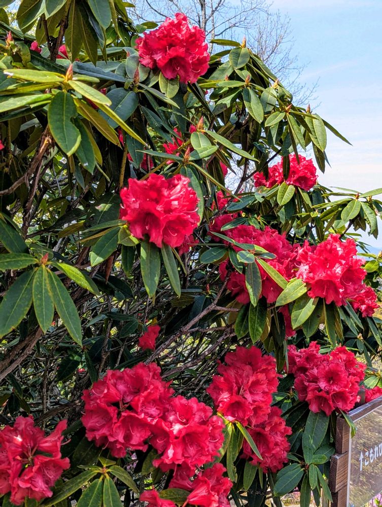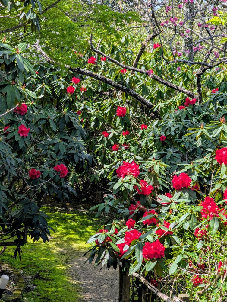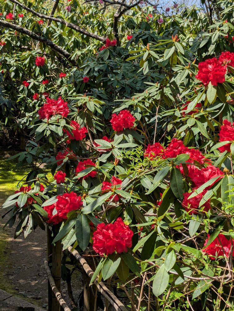 何本もの木に真っ赤なシャクナゲが満開に咲いていましたよ❤️