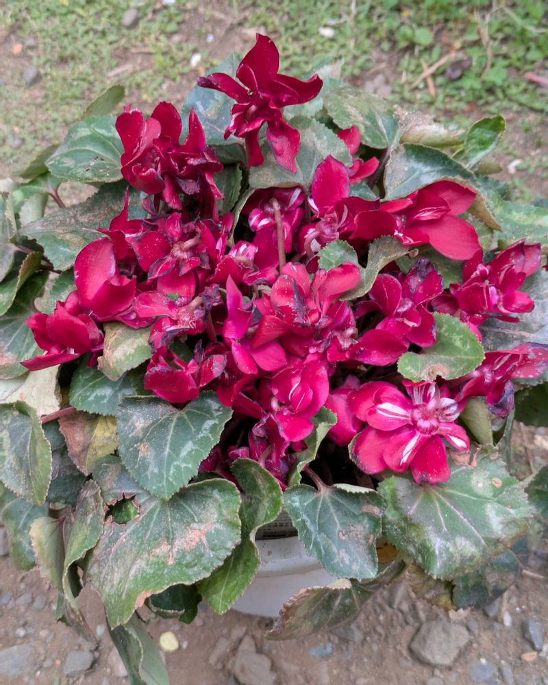 シクラメン、ジックス、おととい花柄摘みを、75本抜いたのに、まだ、こんなに咲いてます。