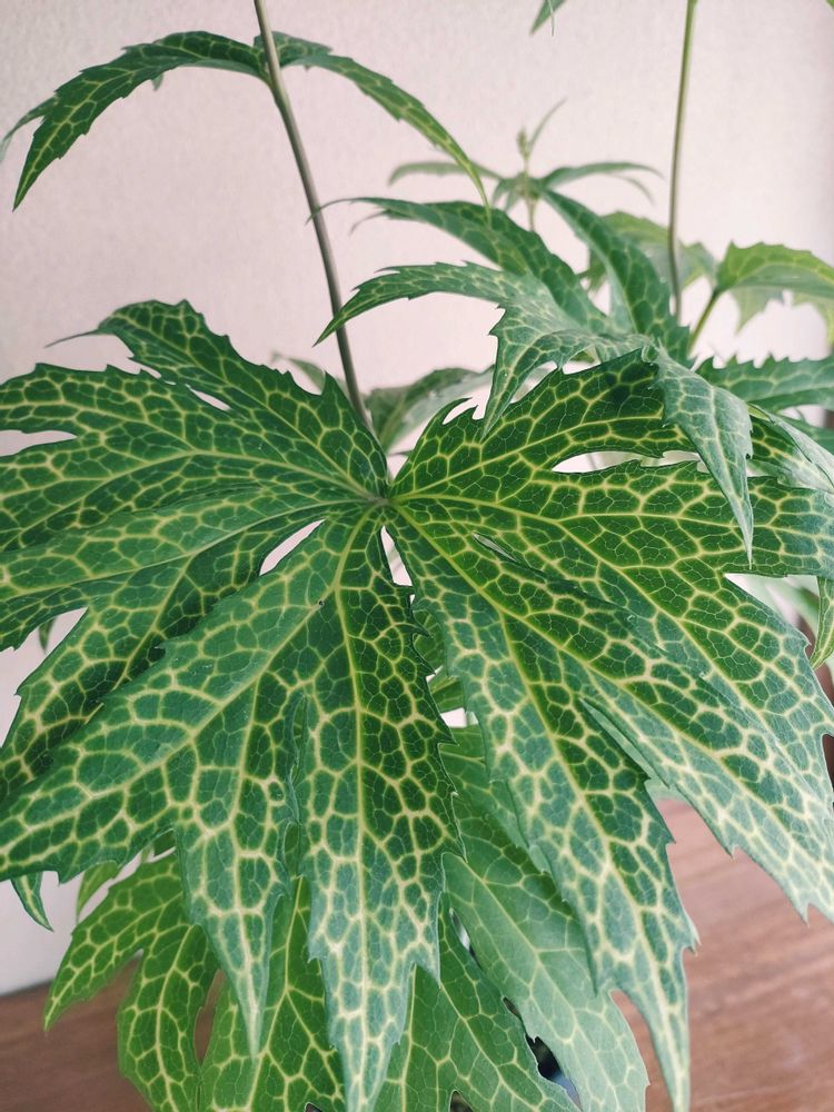 屋外へ出していたヤブレガサ、あまりにカッコよくて鑑賞用に室内へ戻しました😁これで好きなだけジロジロ👀愛でることができます😊