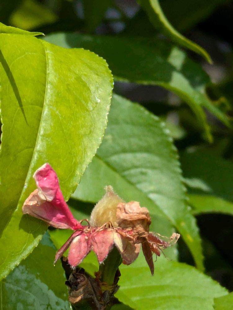 ウメオモイノママ という名前で栽培されているのは実はモモではということで、前回は葉が花の時期に出て来て、葉の様子もモモに軍配が上がりました。