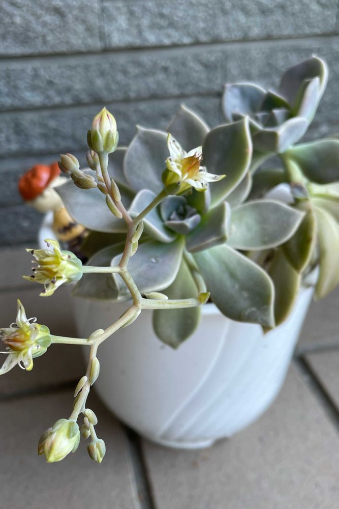 今日の多肉さん…百均メインの多肉さん達に、可愛いお花が咲いています💕