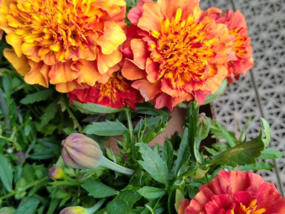 マリーゴールドは黄色とオレンジのイメージありますが、今はいろいろな色があって見るのも楽しいです😍
