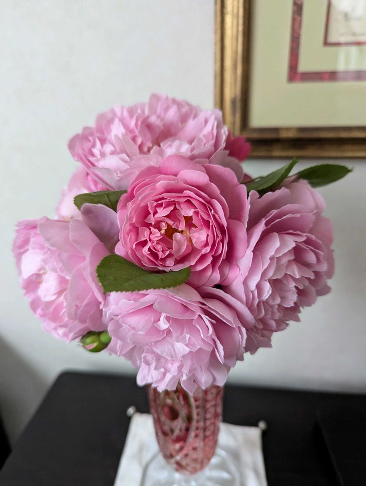 イングリッシュローズは香りが良いから室内で楽しむの、良いですね💖私もサイラスマーナーをカットして玄関に飾ってみました!とても良い香りがして癒されています🥰