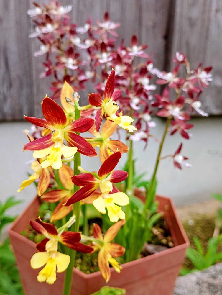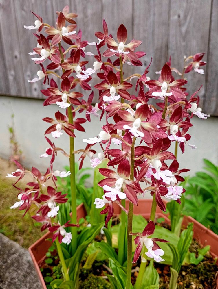 4️⃣5️⃣亡き父のエビネ。エンジ色も例年よりたくさんの花茎が上がり開花しました( ◜‿◝ )♡
