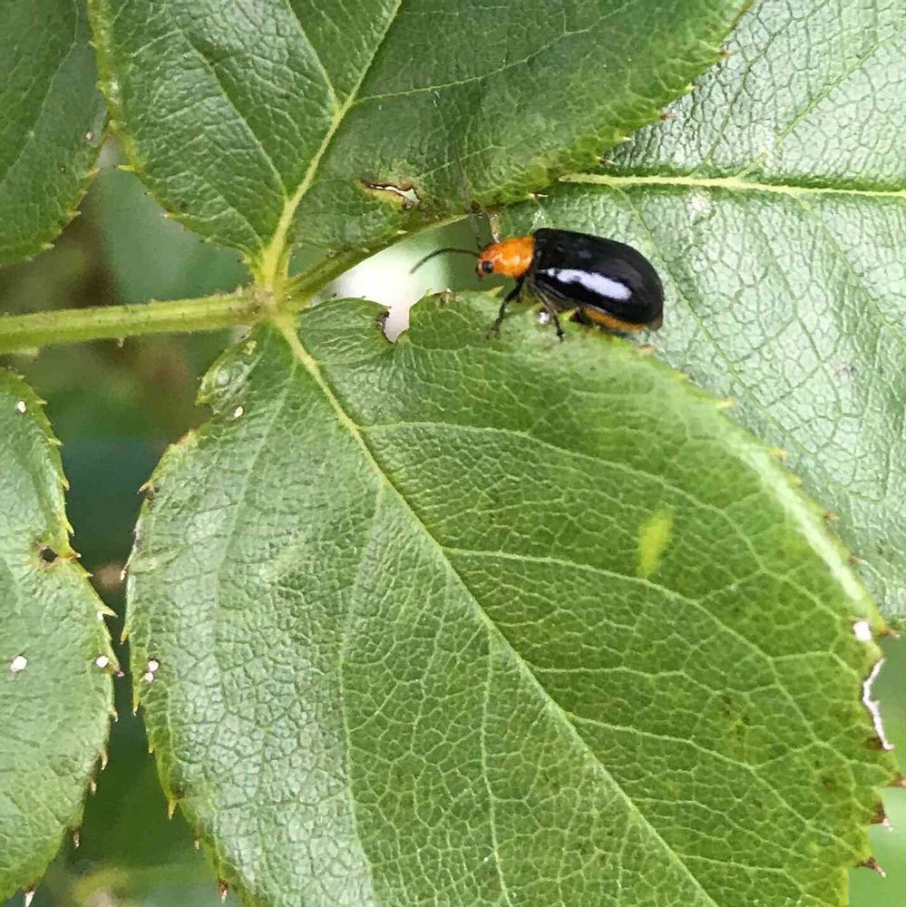 ハムシでしょ。しかもクロウリハムシか何か、バラ専門じゃないやつ。