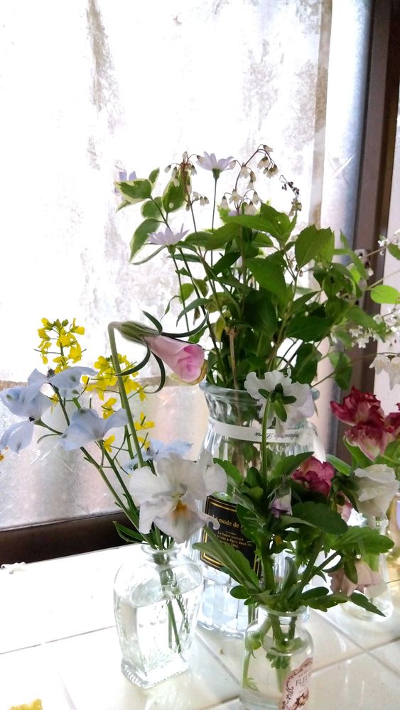 すっごい雨なので、お花積んで室内お花観賞(*˘︶˘*).。*♡