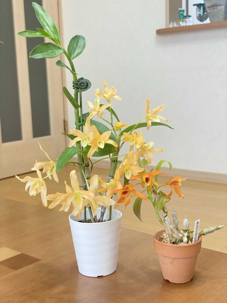 オレンジのデンドロたちはユニカムという小さな原種のデンドロの交配種だから小ぶりでオススメだよん