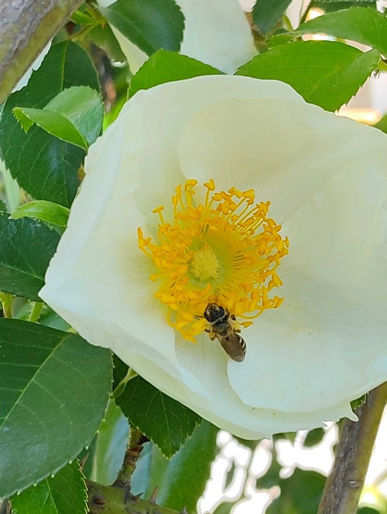 ✲ ナニワイバラの蕊にもぐって、ミツバチ?が一生懸命お仕事中…