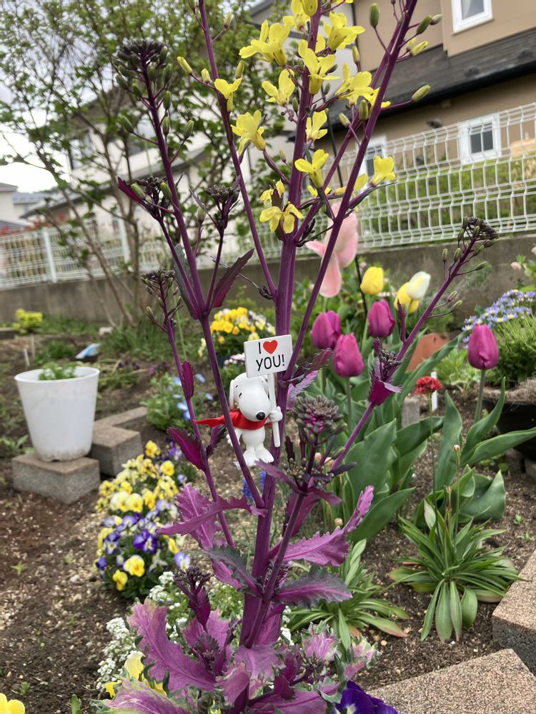 葉牡丹にも菜の花みたいに🟡のお花が咲きました♪