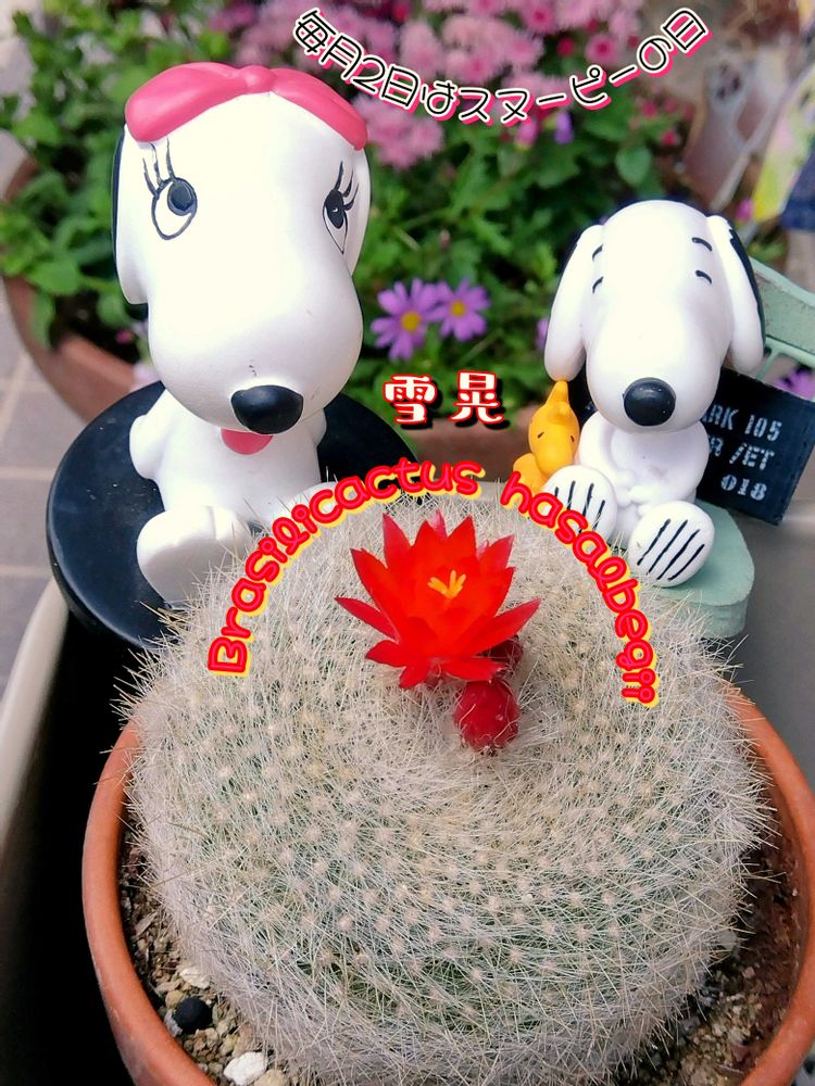 きゃ〜可愛らしい赤いお花にスヌーピーちゃんも可愛いですね~💕꒰ ૢ❛ั◡❛ั ॢ✩꒱゚・*:.。✡*:゚・♡