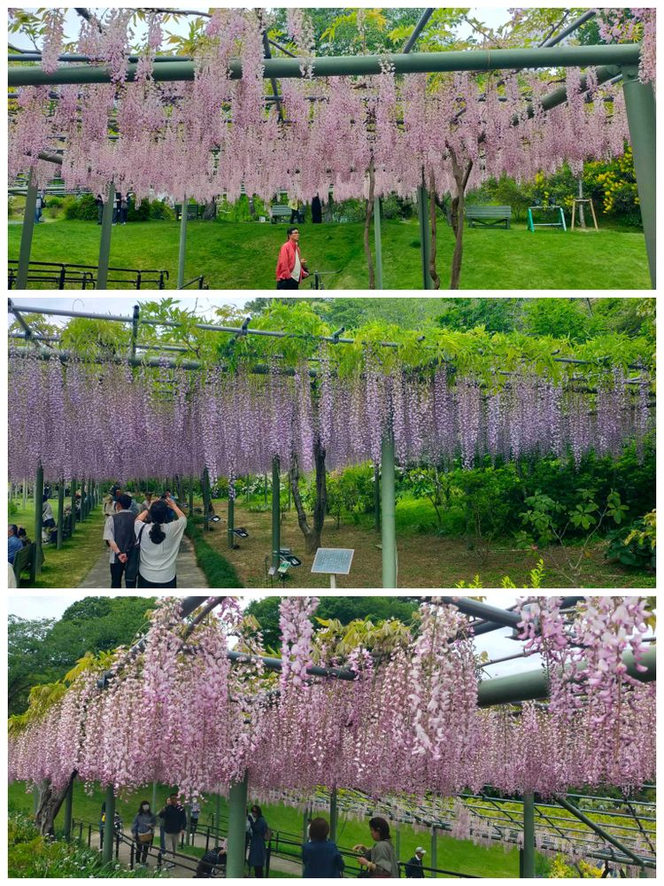 藤色の長いトンネル、ピンクのトンネル、藤色&白&ピンクMIXトンネル、あちこちに白藤が植えられていてうっとりしました😍