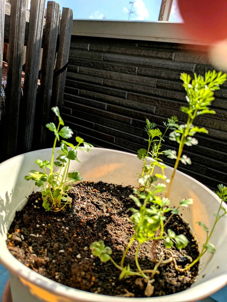 の隣の鉢の枯れたとこにサラダセロリのリボベジを植えてみました(雑にも程がある)