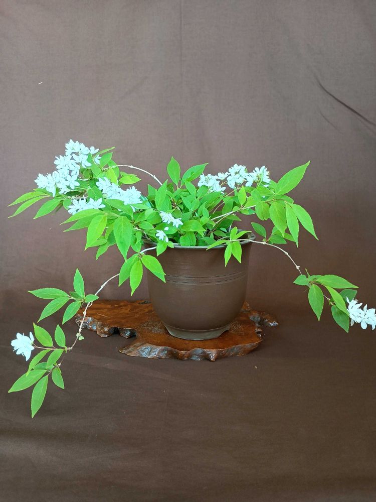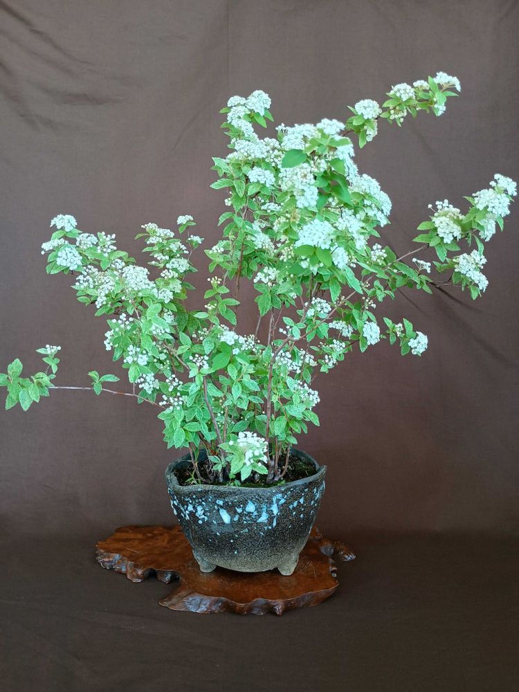 庭のワッサワッサの小手毬がとても素敵な盆栽になりますね。