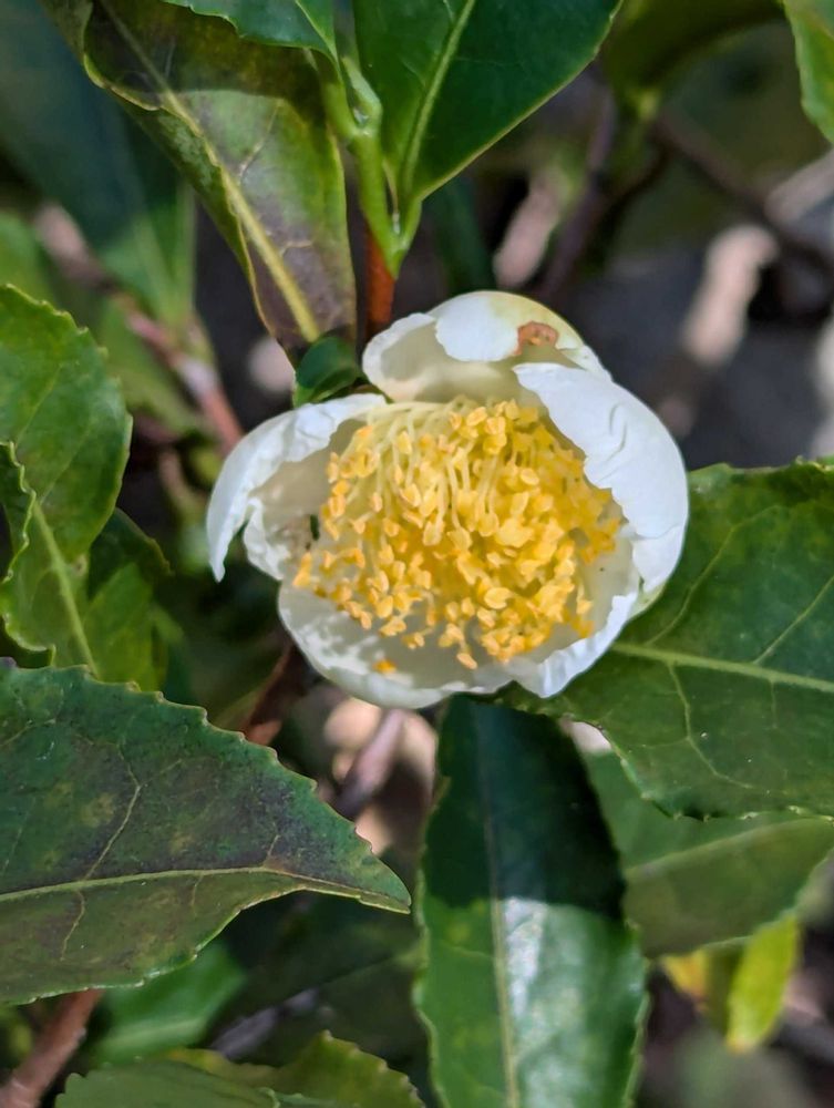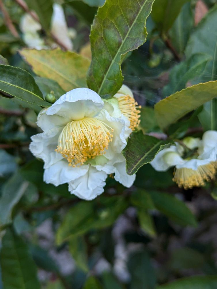 ①〜④昨年10月10日に、相国寺の参道にて、咲き始めたチャノキのお花を撮っていました🤳