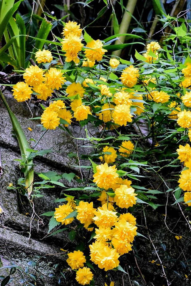 八重山吹は、『自然』では 山⛰️には 咲きません。実(タネ)が できないので、たとえ 咲いていたとしても 人が 植えたものです。