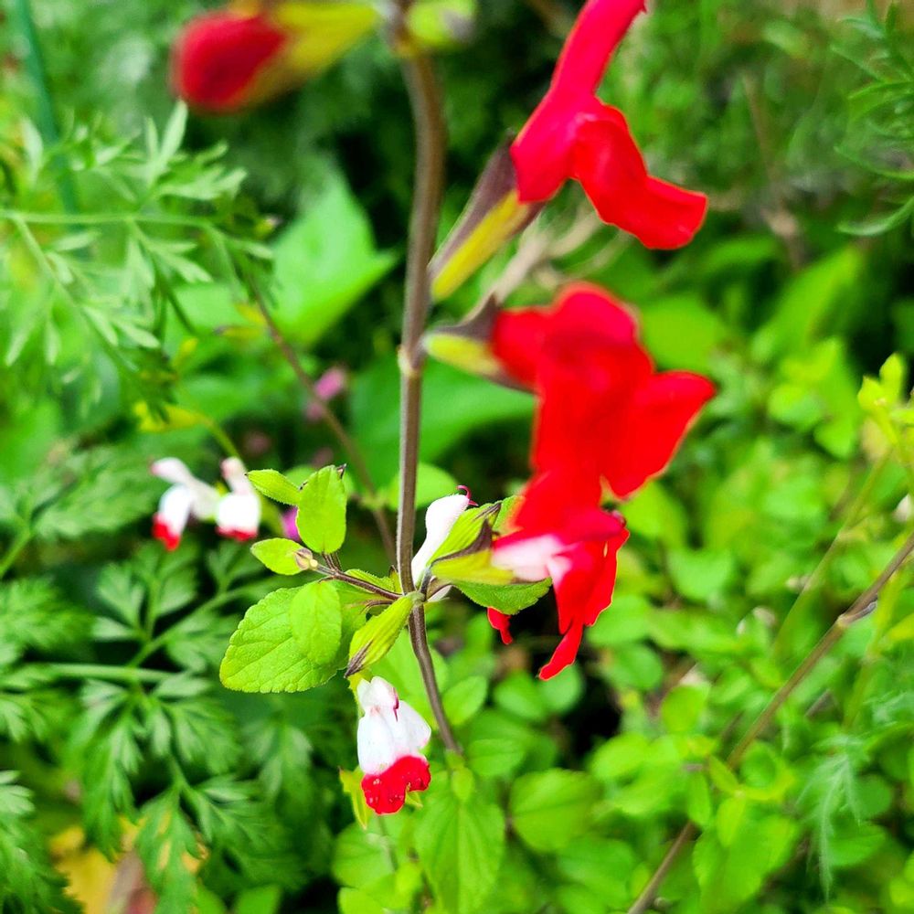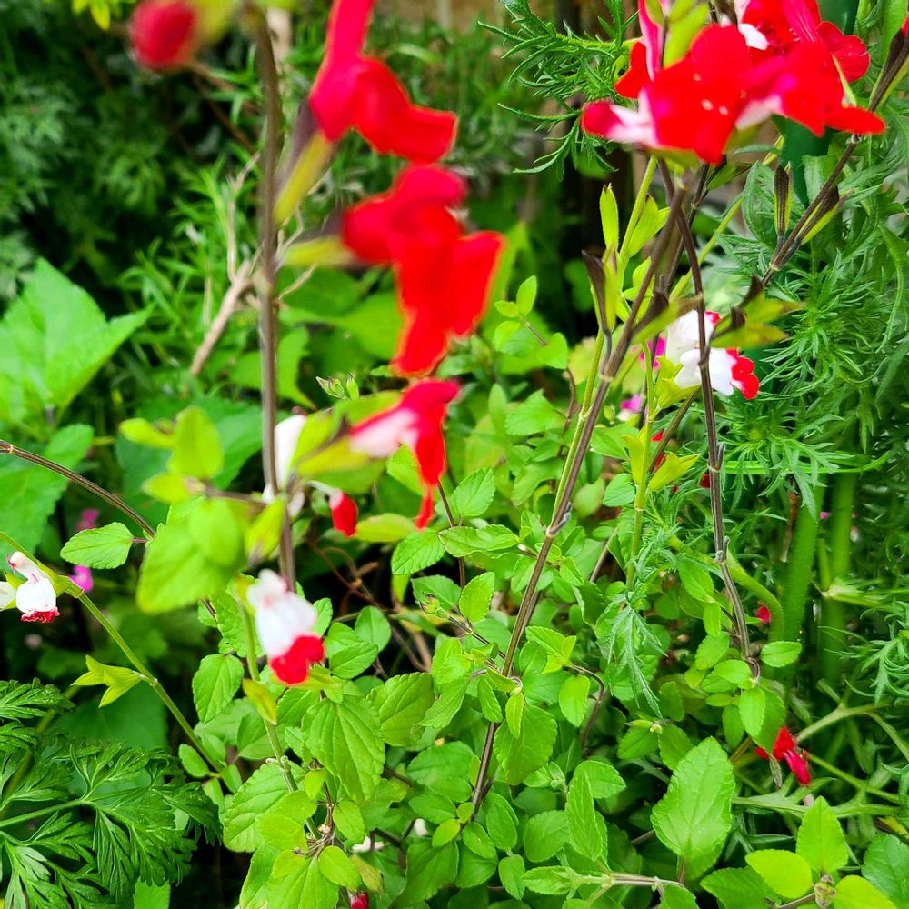 待機苗のチェリー🍒セージが開花💠寄せ植えにインしました(^-^)👍️香りが良いですよ❤️