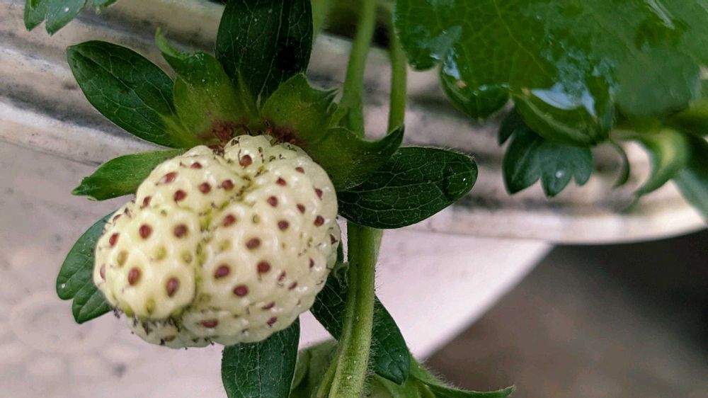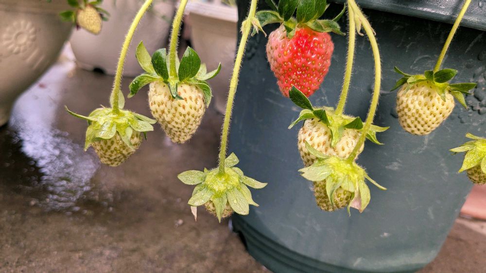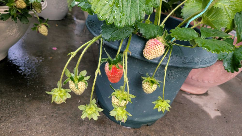 イチゴ🍓〜〜〜実ってきましたよ🤣変なやつも居るけど気にしない気にしない😞たぶんちゃんと授粉できなかったかも😣もっとこれから花が咲けばなぁ🙆
