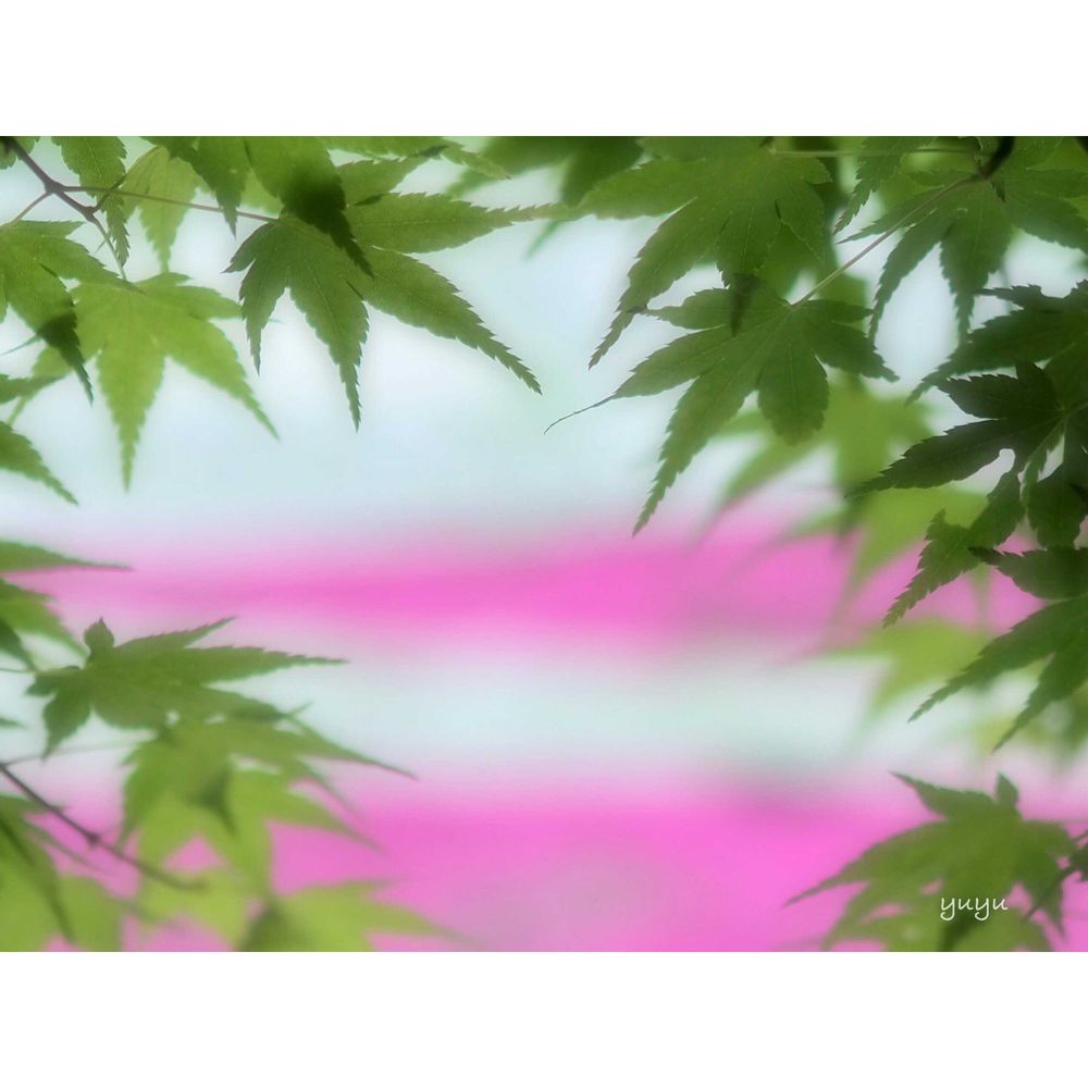 青紅葉のフレームの中に不思議なピンクのライン。芝桜でしたか。意外な組み合わせの素敵な写真。😊💕