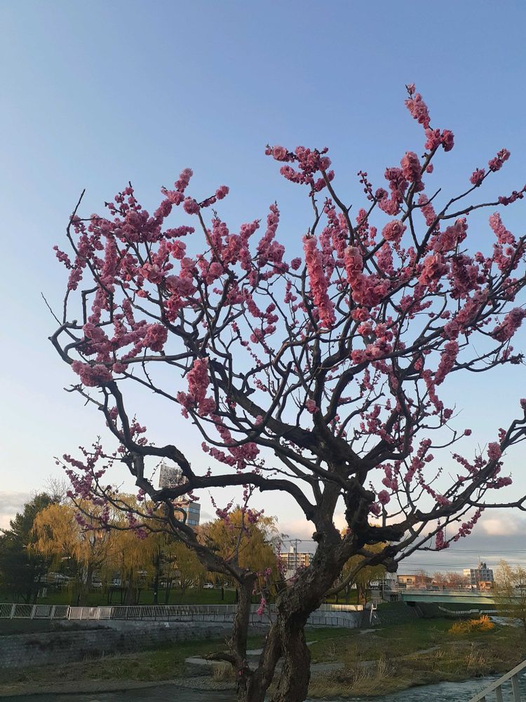 夕暮れ時の梅です。