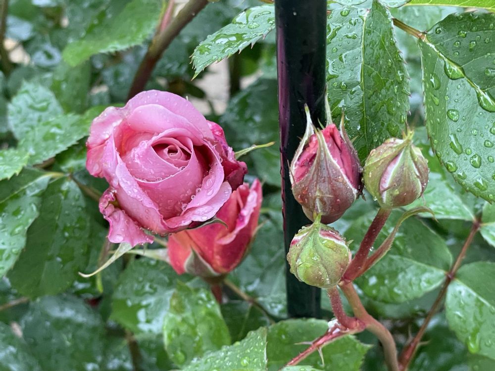 雨の中初開花のバラ達