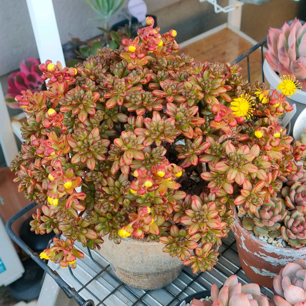 小人の祭りは初めて花を咲かせますが、他のアエオニウムは咲かせた枝だけ終わりました(ある程度楽しんだらカットしますが)
