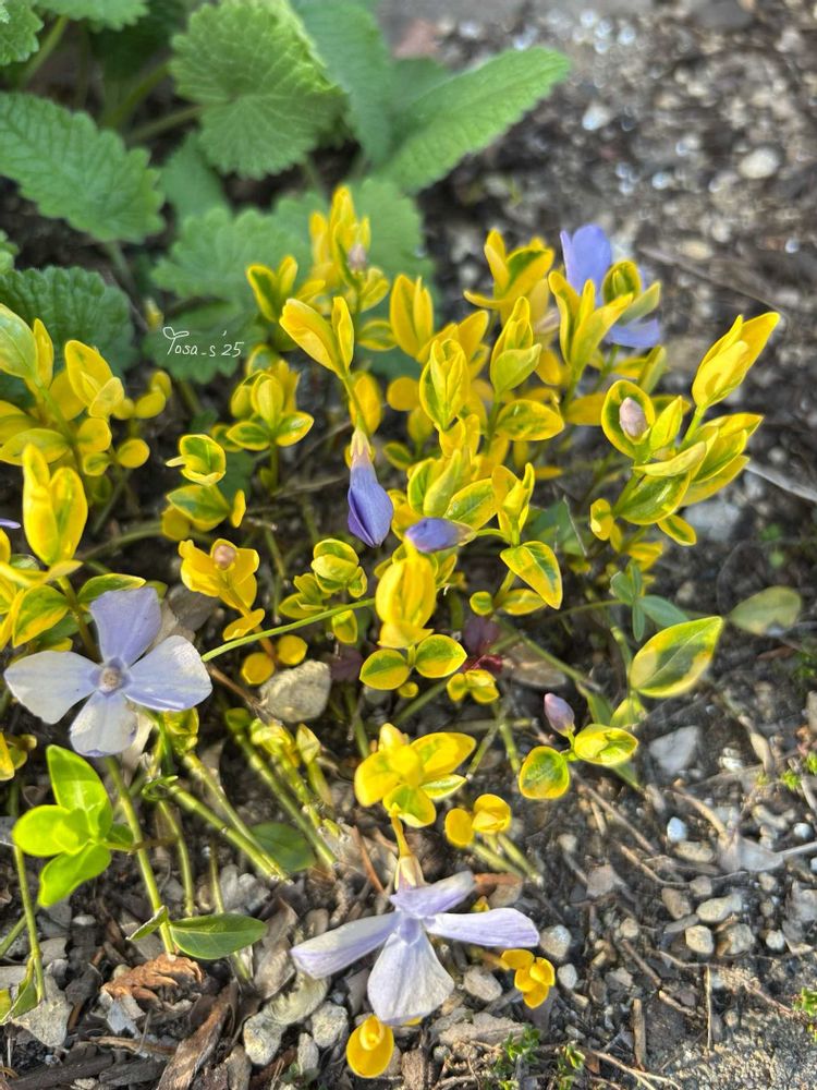 ビンカミノール オーレオバリエガータ💛の新芽が眩しい〜春先に✂️すると新芽が綺麗みたい😍