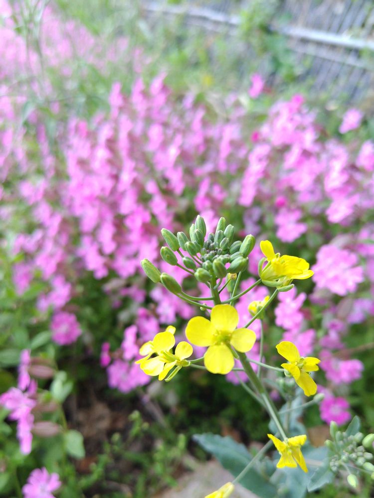 ②カラシナの花がバックに